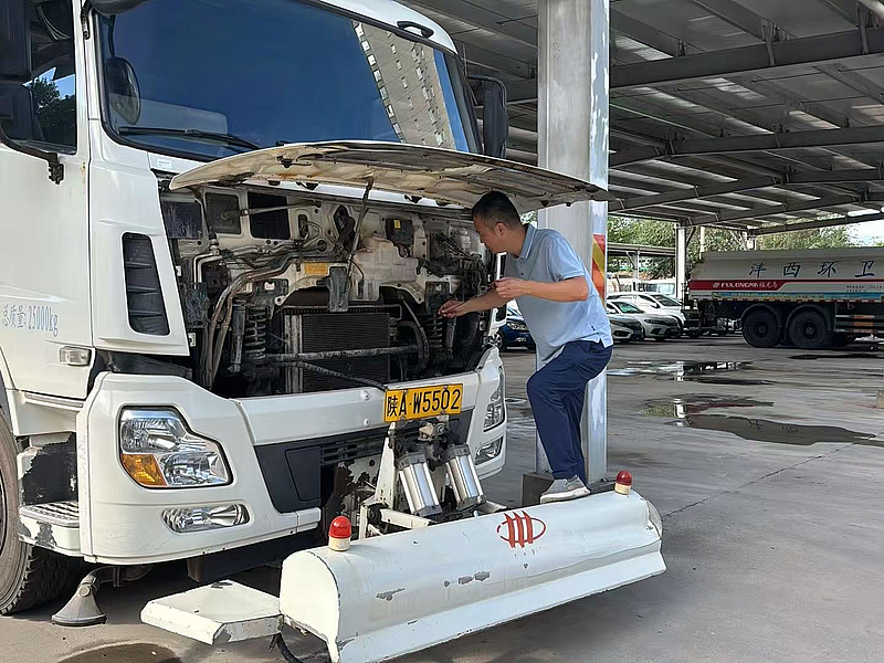 特专技驾驶员每天定时检查车辆、对部分故障进行自主维修,确保洗扫车、洒水车等设备正常运转,对核心区域的洒水作业频次也相应增加,让城市在机械的 “臂膀” 下保持清爽。