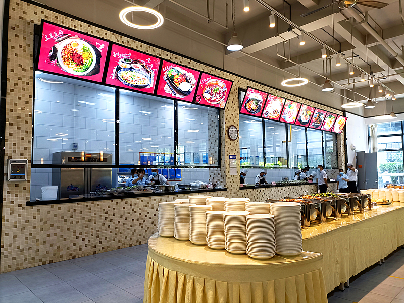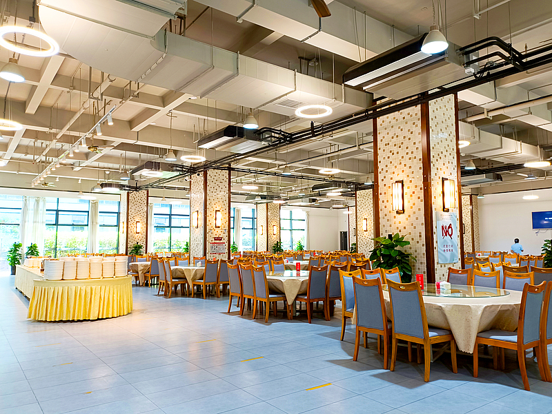 多样化现代餐饮服务:自主运营员工餐厅5家+社会餐饮1家,外包监管餐厅1家,餐厅均配备现代化厨房设备,从食材清洗到烹饪加工,全程遵循食品安全规范,用餐区设立有自助取餐区、快捷套餐区,提供多样化、标准化的品质服务。